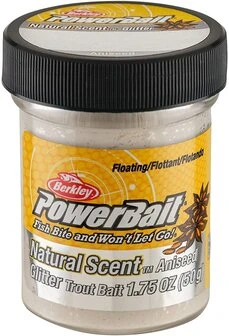 Wanneer je Powerbait zegt dan denk je gelijk aan het foreldeeg van Berkley. En dat is niet voor niets! Sinds de Berkley Powerbait op de markt verscheen heeft het bewezen dat het een plek bovenaan in de top verdiend. Zeg maar gerust dat de Berkley Powerbait foreldeeg de nummer één is voor het vissen op forel met deeg. Het foreldeeg heeft een ongekende aantrekkingskracht op forel. Door middel van een deegvormer kan je de Powerbait vormen en zet je in een handomdraai een wokkel op de haak en als je een beetje handig bent kan dit ook prima met de hand. Door het langzaam binnen te halen gaat de foreldeeg draaien en verleid het de forel tot een aanbeet. Het beschikt over een aantrekkelijke geur voor de vis, zodat zelfs de meest argwanende vis toe zal slaan