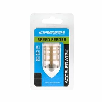 De Accelerate Speed Feeders van CRESTA is gemaakt van kunststof. Dankzij het lagere soortelijke gewicht, ligt het zwaartepunt veel beter gepositioneerd als bij een metalen uitvoering. Het kunststof behoudt altijd zijn vorm, waardoor het aerodynamische design behouden blijft. De maaswijdte van het kunststof gaas is aan de onderzijde vergroot, zodat het voer gemakkelijk uit de korf komt. Aan de bovenzijde biedt het voldoende grip, zodat het voer en aas wel stevig aangedrukt kunnen worden om pas aan de bodem los te komen. De Accelerate Speed Feeders zijn voorzien van een lus ter bevestiging. Die geeft een maximale bewegingsvrijheid aan de korf tijdens de worp, zodat deze gemakkelijk zijn balanspunt vindt en zijn snelheid tijdens de worp behoudt.