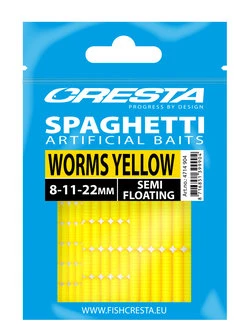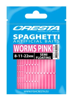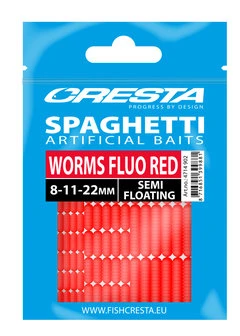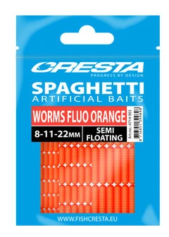 Cresta Spaghetti is een drijvend kunstaas van hoge kwaliteit. Wanneer het op de haak geplaatst wordt, ontstaat een zwevende of zeer langzaam zinkende aaspresentatie. Samen met de opvallende kleuren wordt deze hierdoor enorm attractief voor vele vissoorten. Spaghetti kan direct op de haak gebruikt worden in één of meerdere kleuren tegelijk, maar geeft ook in combinatie met levend aas, zoals maden en wormen, extra vangkracht! Dankzij de 3 verschillende formaten in deze verpakking kan Spaghetti gecombineerd worden met vele haaksoorten en maten.