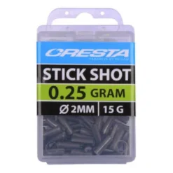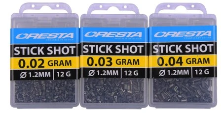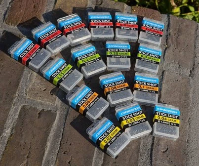 Deze Stickshots helpen je bij het eenvoudig uitloden van elk dobber. Dankzij de aanduiding in gewicht i.p.v. van nummers is het selecteren van het juiste loodje zeer eenvoudig. De juiste zachtheid en de perfect gecentreerde snede zorgen ervoor dat Stickshots gemakkelijk op zowel dunne als dikkere lijnen te fixeren zijn , zonder dat deze hierdoor beschadigen. De langwerpige vorm zorgt voor extra grip op de lijn, waardoor ze tijdens het vissen niet of nauwelijks verschuiven. De slanke vorm zorgt voor een geleidelijke en zeer natuurlijke manier van afzinken. Dit alles maakt Stickshots zeer geschikt voor de traditionele visserij op witvis en de karpervisserij op commercials. Stickshots zijn verkrijgbaar in 16 verschillende maten van 0,02 t/m 1,0gr, zodat altijd een optimale loodzetting bereikt kan worden.