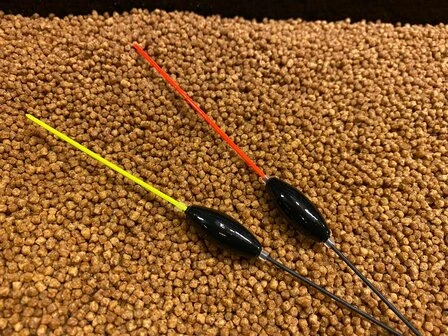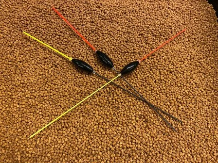 Draad gaat door het lichaampje , lichaampje kan geplaatst worden naar keuze tussen 2 rubbers .
