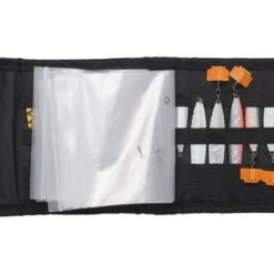 Pocket Flip-portemonnee voor onze line-thru pluggen gemaakt van zacht duurzaam 600Denier-materiaal met binnenvoering en elastische verdelers. 8 verwijderbare zakken met ritssluiting voor vooraf opgetuigd line-thru kunstaas , met 8 dregbeschermers, voor maat 8-5 dreggen. Gemaakt om perfect in jaszakken te passen. Biedt plaats aan 14 pluggen van 13 cm lang en 8 voorgemonteerde pluggen, met sporen in ritssluitingszakken.
